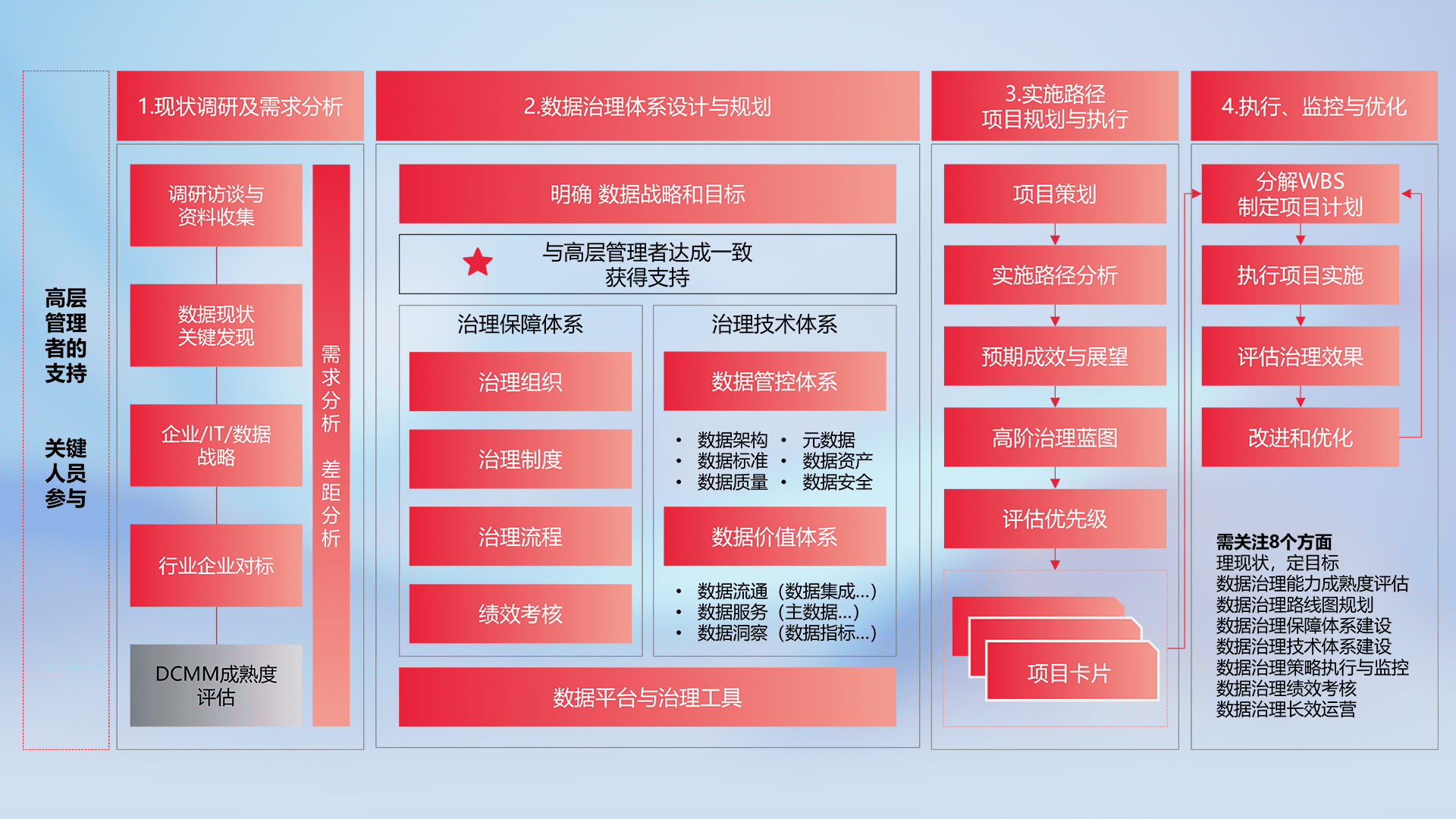 制定并执行统一的数据标准,,,,规范数据定义和格式,,,,消除冗余和不一致性,,,实现跨部门和跨系统的数据一致性,,,为企业提供标准化的数据基础。。。